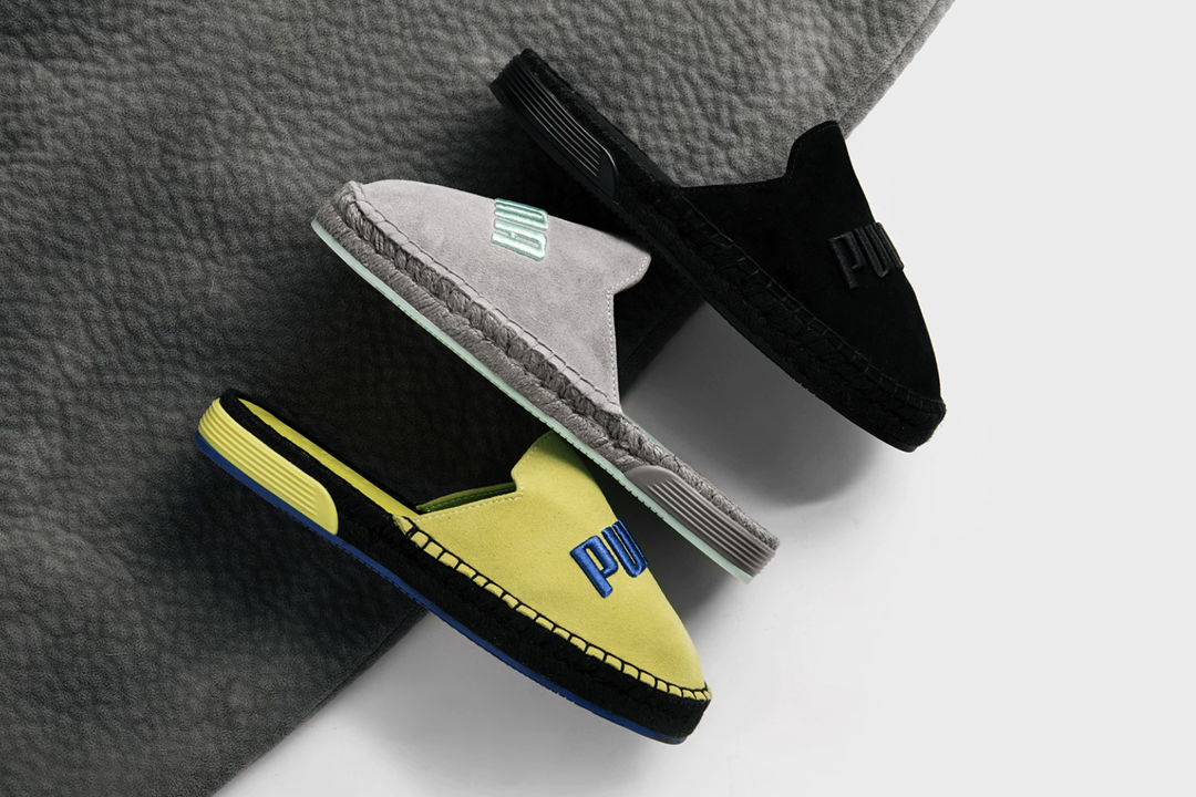 The espadrille has come a long way from its humble origins as a hand-crafted shoe made from naturally found fibers. Originally a flat shoe, it’s varying stages of metamorphosis include transforming into a heeled version woven by the hands of Joseph Altuzarra. Now it’s Rihanna’s turn to revamp the style just in time for summer. Taking a lesson in colour theory, Fenty PUMA’s latest drop comes in three colourways: yellow/blue, grey/teal, and black on black. Each version boldly features the brand’s name embedded on the front, making for a contemporary pair of summer slip-ons.