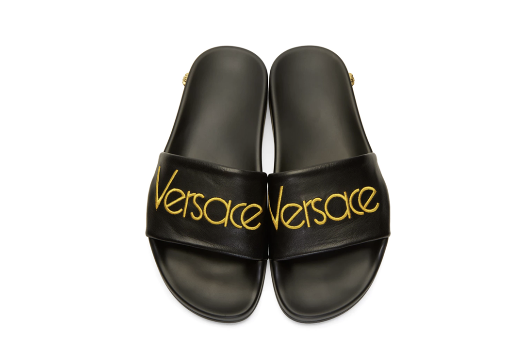 Logo mania is set to make a return after monogram clothing and accessories resurfaced on the runway last year, though logo-laden slides have been in circulation since the collision of high fashion and streetwear. With the rebranding and digging into archives at Versace, their latest footwear releases are a reflection of just that. Donatella Versace brought her brother back from the dead in a sense with a summer 2018 collection aptly titled the Tribute Collection. In it, Donatella pulled inspiration from her brother’s archives, including a vintage logo that was discontinued in 1990. It’s now been rolled out onto the likes of slides for your feet to enjoy.
