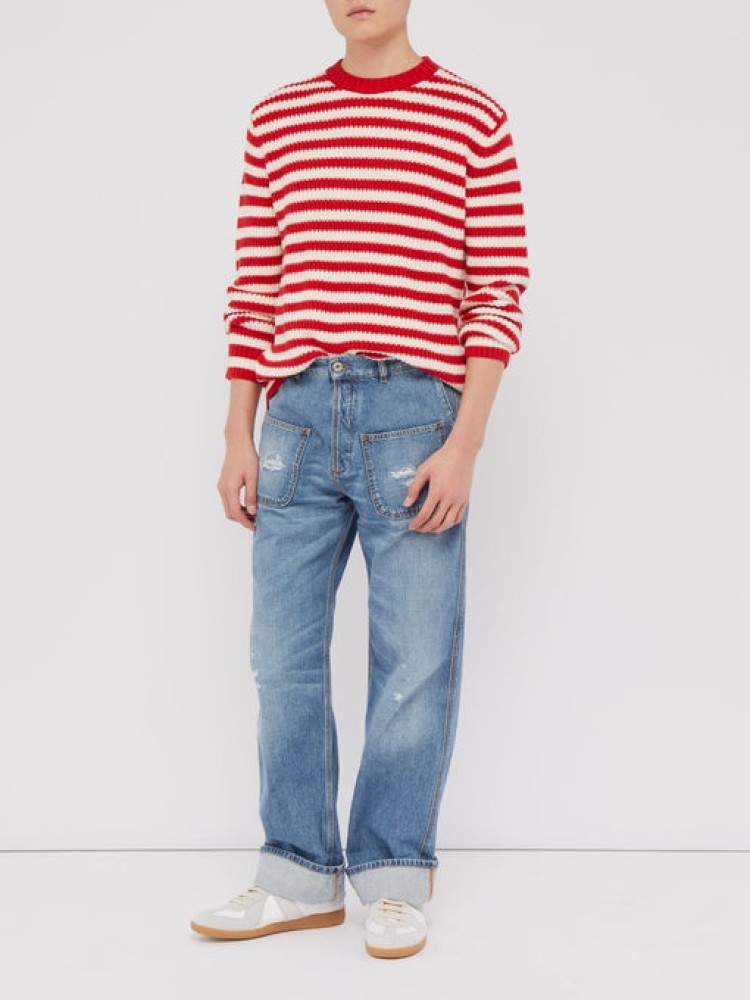 Continuing on with the ’90s street trend, red-and-white stripes can never go wrong. Designed in Hawaii and made in Italy, Alanui aims to create knitwear that will last throughout your life. Easily pair it with blue jeans and white trainers to heighten the retro feel – or even red trainers if your family still thinks you’re not “red” enough.