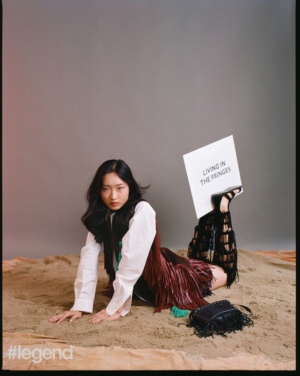 Live on the fringe no more! Be the centre of attention with every step you take in this rusty red suede fringe vest from Longchamp and their stunning gladiator sandals.