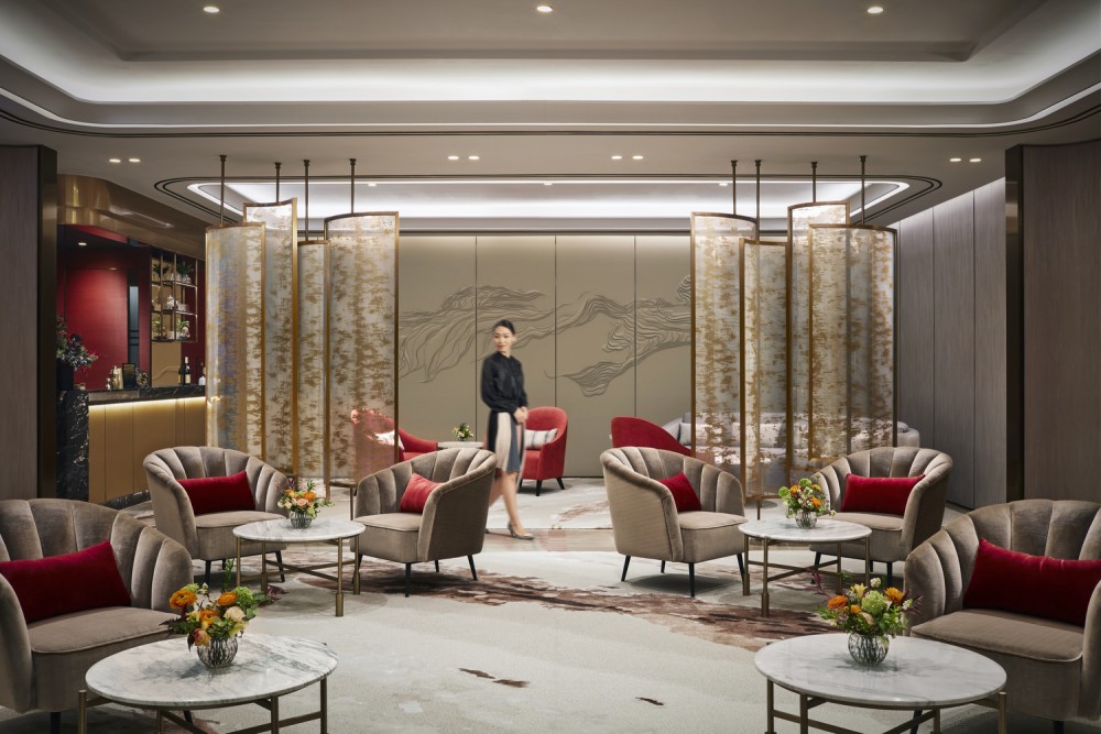 In addition, Vivienne Tam and R.Sanderson have collaborated to design the salon staff’s attire. Vivienne Tam has used a selection of crêpe and silk on the uniforms, while famed British shoe designer R.Sanderson has provided the staff with its signature hand-gilded 24K gold leaf heels and gem buckles.