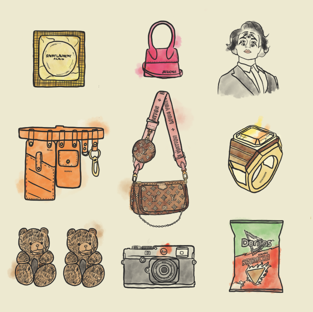 Bottom row (left to right): Vetements’s Teddy Bear Slippers; Leica M-E TYP 240; Lay’s Screamin’ Sriracha Chips
