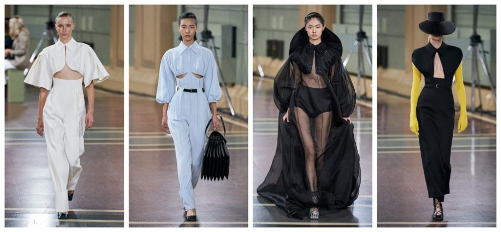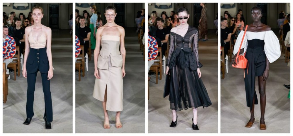 Flirting between propriety and subversion, Natalia Alaverdian’s “singular intention of this label continues to be removal of barriers” through a subtle structural realism that demonstrates her technique so triumphantly. Skirts appeared as trousers and trousers appeared as skirts, playing right into the seditious tendencies of her collection. Not all her subversions were so obvious, as emphasised through her tonal tempering of beige skin-tight dresses, raw-edged silk and rippling midi-skirts. Bustiers constructed from the bottom half of blazers were, quite frankly, a stroke of genius – the very epitome of visionary repurposing. The tailoring, as always, was flawless; each seam seemed carefully thought-out. Edginess and the sultry surfaced in contrast draping, silkiness and an organza ensemble. The teasing of the ankle-grazing sheerness conspired to seduce and hypnotise without stealing the spotlight. The drum-sized bucket bags in their simplicity were the perfect accessory to make a statement while remaining sharp and astute. A contrast to the previous Elizabethan and heroine-inspired collection, Alaverdian proves once again that she has perfected the art of tailoring to a tee.