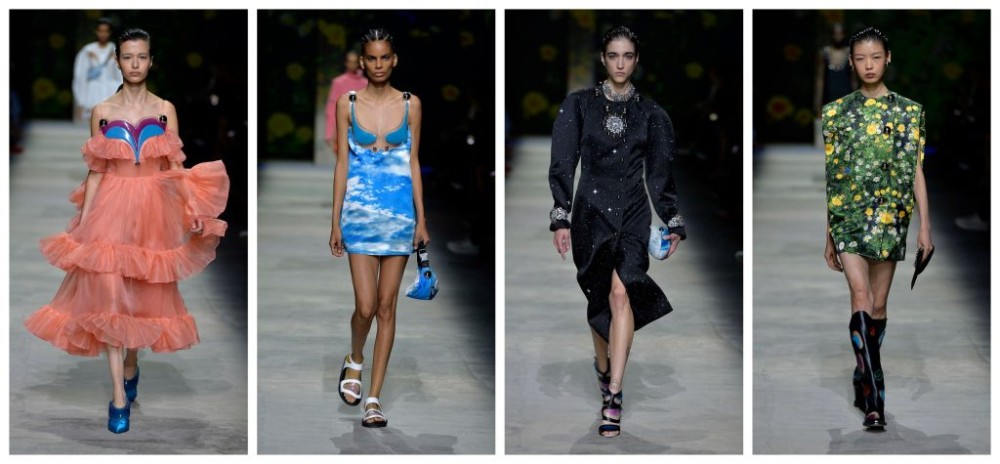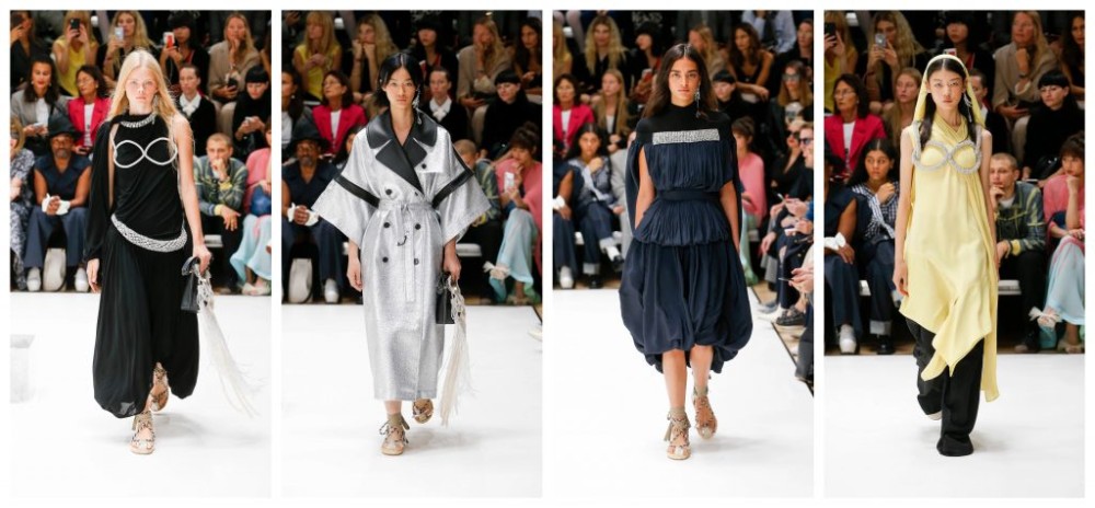 Coining the term “ecosexual” to describe the people who “love the planet, who love to make love to the planet”, Christopher Kane showed us his elucidation of modern erotica. During a time when the Amazon is burning and environmental activism is at its peak, it’s surprising that Kane ironically insisted that this was not a political statement about the climate discussion. There may be a perverse element of humour there, but he is no careless designer. Reinterpreting the sci-fi motifs previously explored, we were counterintuitively given a blast from the past that came from the future. Offerings of earthy garden prints offset the futurism of the door-knob studs, cupcake silhouettes and armour-like cut-out breastplate detailing. Adopting a ’60s undertone with its mini-dresses (straight out of an unseen Austin Powers film) and boisterous prints, these were no ordinary florals for spring. The sexuality that was channelled, unlike the other showings this season, was of a more fun sort, with a little sardonicism thrown in for good measure – you can’t tell us those blue skies aren’t just a little ominous, can you? The Scottish designer brought us an unsuspecting and playful collection fit for the year ahead – eco, it seems, is the new sexy.