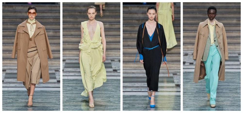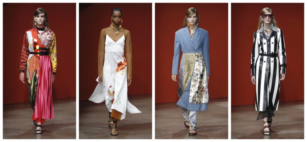 Electric and eclectic, Karl Templer injected a symphony of colour and energy this season: think animal and Hawaiian prints, and a new meaning for the word maximalist. Finding comfort in the familiar, Ports 1961 started with shirt dressing, beginning with a silk maxi-dress amalgamated from a mismatch of Matisse-influenced prints, and finished with a pleated half-skirt. This look would soon become a signature within this collection, along with the unexpected pattern play. We, too, seek relief in the wonted, but we hope to be forgiven for having a bout of déjà vu as we reminisce about last season’s Marni collection. The hybrid pieces were arguably the most memorable; the powder blue single-fastening coat layered under a scarf-like silk was the embodiment of spring and warmer days. Ports 1961 isn’t famed for its accessories; however, it seems that Templer intends to change that as colourful chain necklaces, speckled oversized sunglasses and low-heeled sandals exuded consumer appeal. Befitting of the venue, Tate Modern, Ports 1961 exhibited a collection that was loud without compromising on taste.