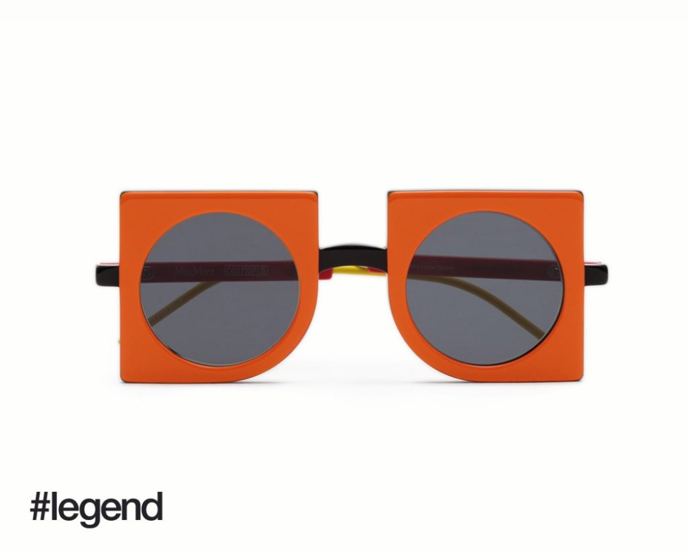 Rendered in black or orange with grey lenses and brightly coloured tips, these sunglasses are produced in a limited edition of 800 pieces as part of the autumn/winter 2019–2020 Max Mara eyewear collection. A fine interplay of saturated tones and geometry defines both the sunglasses and the packaging, which includes a printed metal box with geometric patterning and a soft black case with the Prism emblem.
