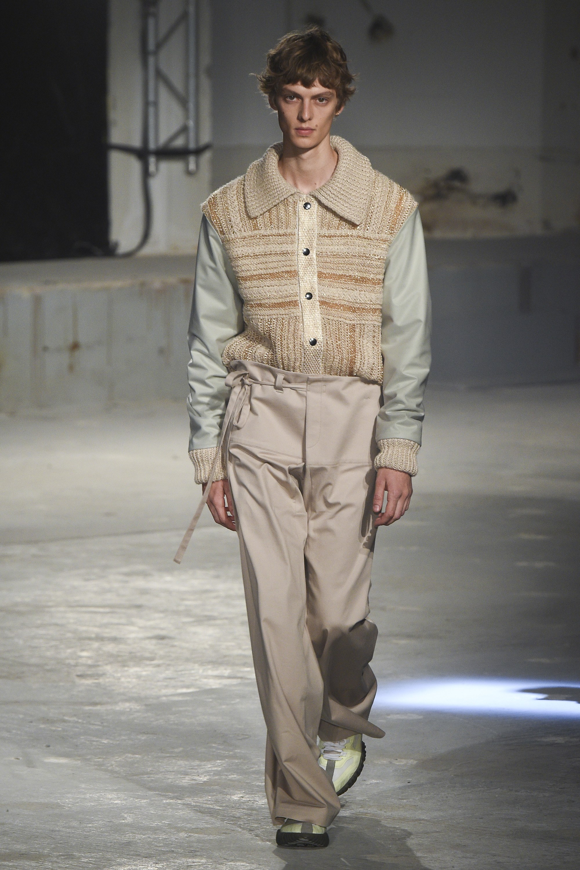Samuel Ross at A-Cold-Wall brought out his first collection after being named a finalist in this year’s LVMH competition. The show was rather theatrical, apparently including a wet naked man running out of an incubator covered in a “primary-red liquid used to represent rebirth,” according to Ross. The discordant chaos made for a good show, and the clothing shared the same experimental sentiment.
