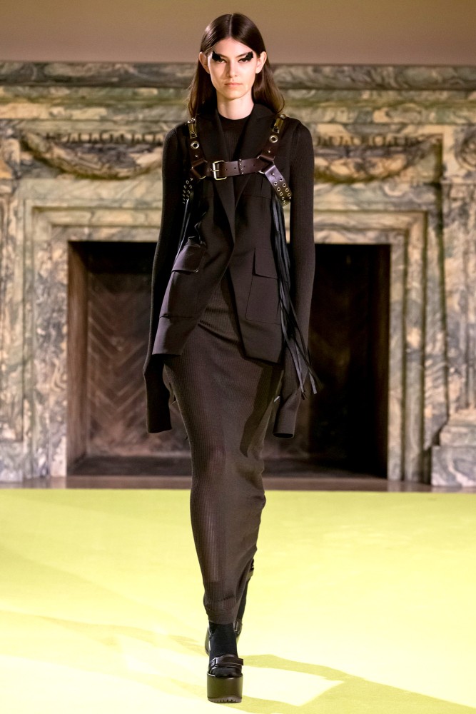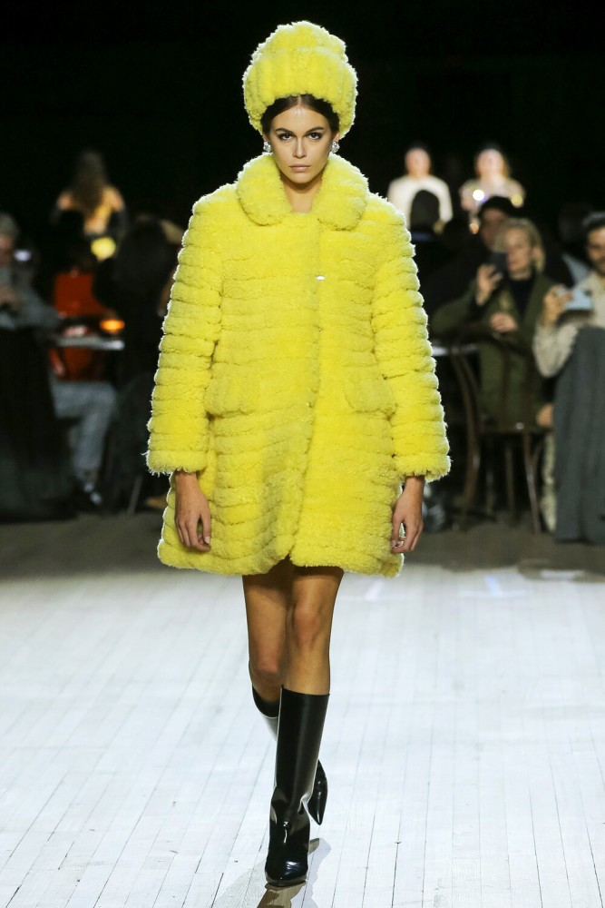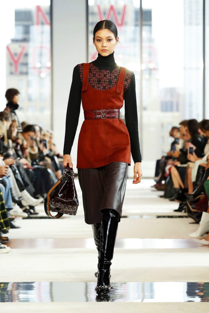 The French brand’s creative director, Sophie Delafontaine, is quintessentially Parisian, but ever since the spring 2019 collection, the brand has been looking towards the US East Coast for inspiration. Against the silhouette of the city’s skyline in a 360-degree glass skyscraper, it was reminiscent of a retro era, when suede reigned supreme and when layering cashmere polo necks, thick cord blazers and Aran jumpers was everything. Longchamp is moving away from its forebearers’ legacy of small leather goods and accessories, and as the sun dawned on the catwalk, the brand brought with it a new day: one far more ready-to-wear-centric. There were culottes galore – a ’70s staple – as well as dungarees and double-belted tunics layered over high-neck jumpers. The fashion house’s essential Le Pliage bag was manipulated to new extremes; you could get it as large or as small as you possibly wanted. Silver-balled boots were different, but the classic green ensemble atop was a timeless classic. It’s a new take on your mother’s wardrobe, but with the glossy Longchamp stamp of approval.
