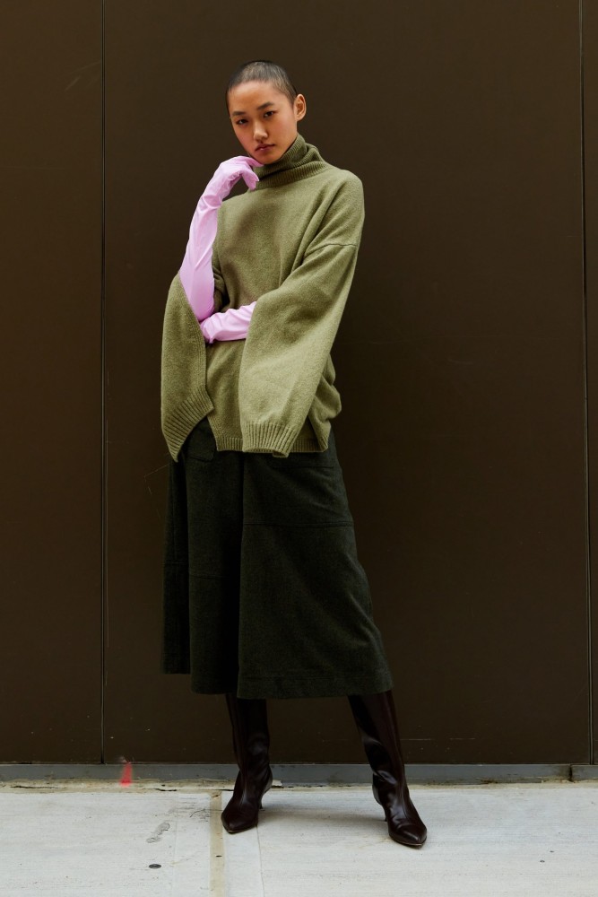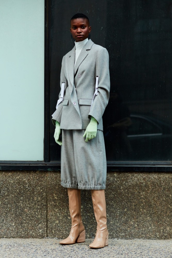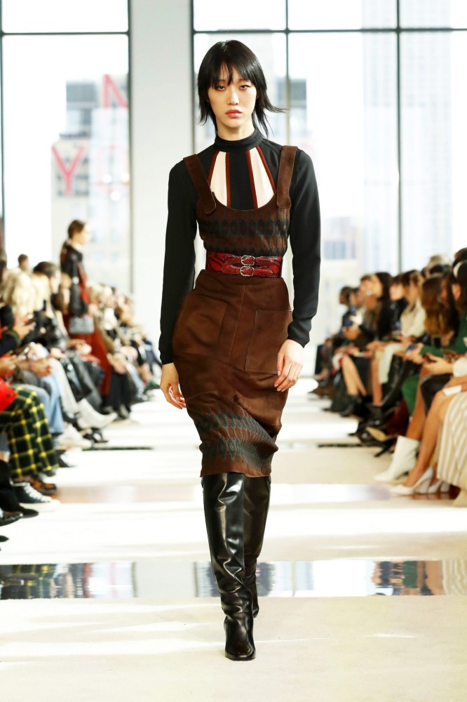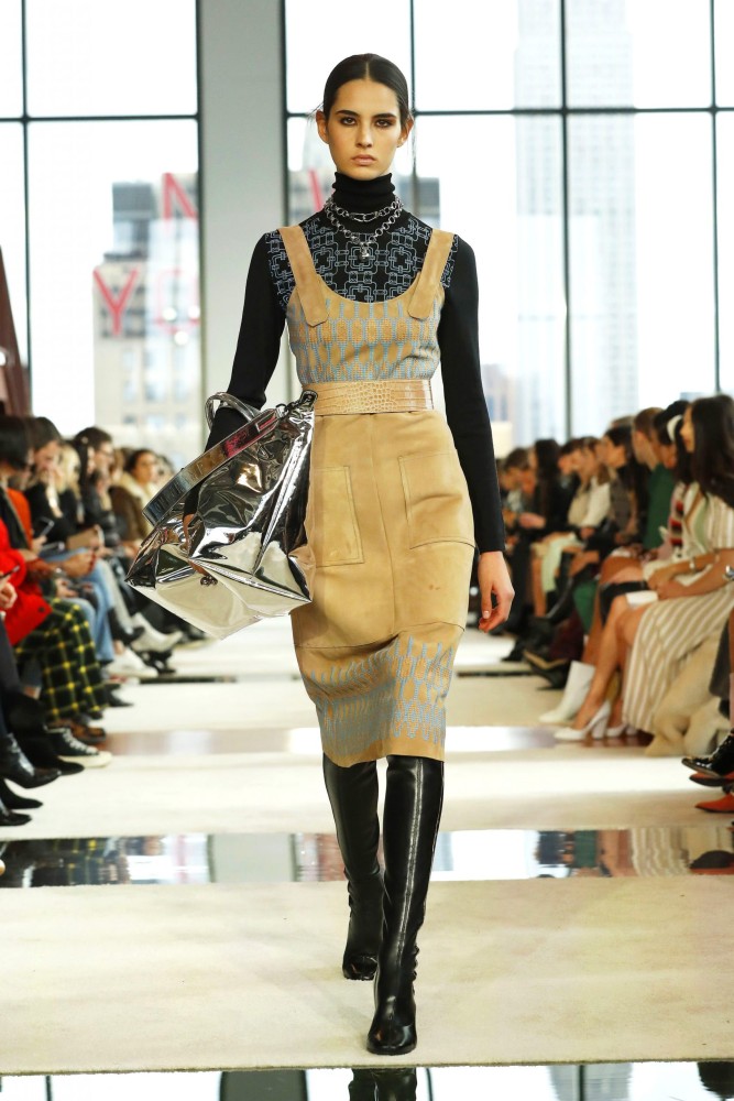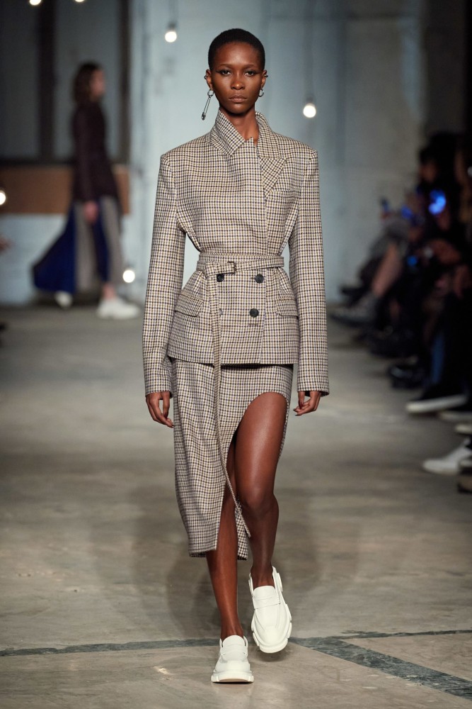 The NYFW calendar didn’t list a Tibi show, but this was no mistake. Amy Smilovic decided it was time for a change. Her SoHo store was transformed into a museum commemorating the brand’s evolution, with a gallery of hits, including that famed 2015 off-shoulder poplin blouse. Instagram and its insatiable need to front served as a source of inspiration (or disdain) for the back room of the shop. Designers typically cite places like Morocco, Cancun or Tuscany as reference points, but Smilovic stayed a little closer to home: the village of Port Chester, New York. She strolled its streets, wandered into laundromats and cafes, and returned to shoot her autumn/winter collection. A crisp plaid shirt-dress, Amish-buckled leather loafers and leather gloves, an asymmetric-hemmed camel knit dress atop a crisp white dress with almost-ironic stiletto boots finished with a leather market bag (hello, fashionable market auntie)… all of it conspired to make suburbia a little less ordinary. It proved there’s no need to stray far from home for ingenuity – all you needed to do was hop on the Metro North line to Port Chester.