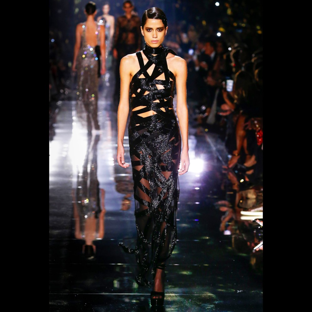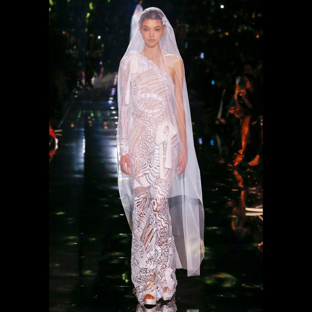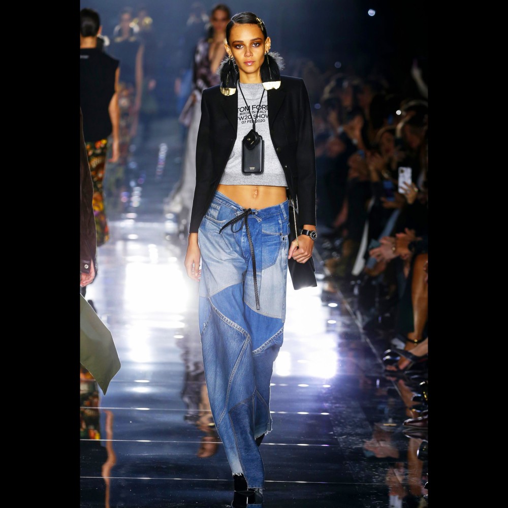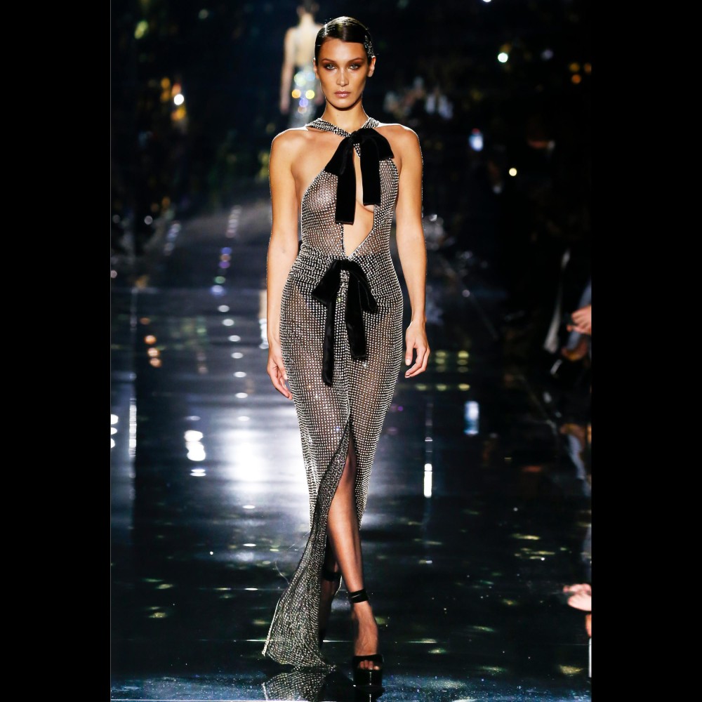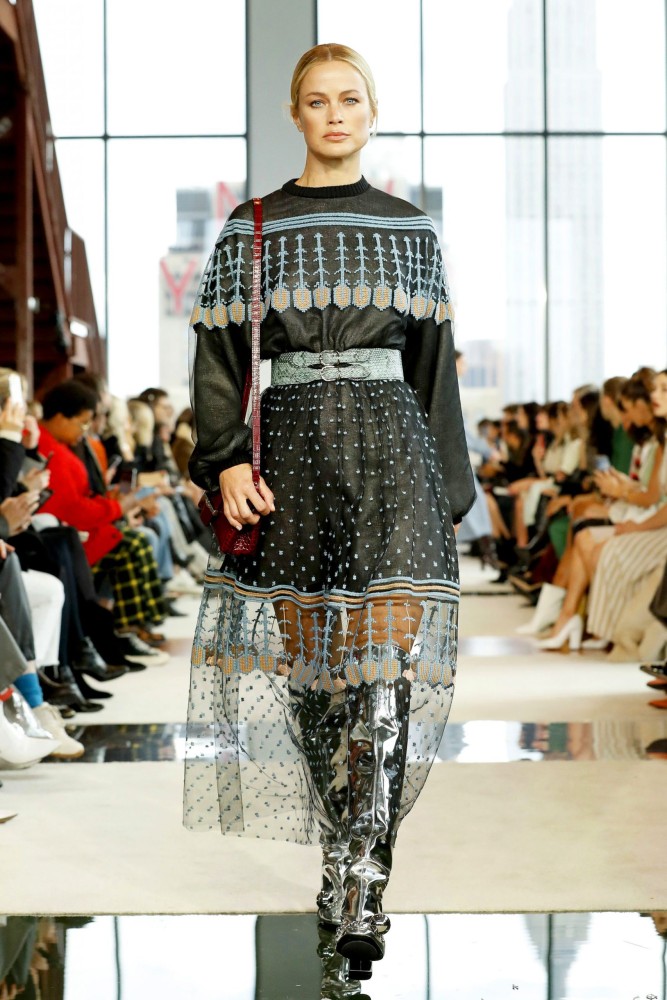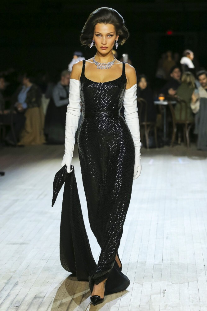 Since this year’s NYFW coincided with Oscars weekend, it was unsurprising that the front row didn’t shine quite as bright with the usual stars – but the Tom Ford show wasn’t lacking in that department. A red-carpet-worthy performance ensued, though the gowns that were eagerly anticipated didn’t make their appearance until the finale. Denim made a friendly comeback amidst a mix of audacious prints and luxurious velvet tones, while patchwork denims speckled amongst satin track pants, silver platform sandals and grey marl sweatshirts, staying true to the designer’s sentiment of “chic, possibly slightly stoned and very sensual”. To the soundtrack of “Killing Me Softly”, the disco ball dispersed flecks of starlight, but even that wasn’t enough to match the glamour of the gowns. Bella Hadid may have been the talk of the show in her crystalline, almost chainmail double-velvet bow dress, but the intricacy of the lace and the delicate nature of the veil on the finale dress that Mika Schneider showcased was truly unparalleled.