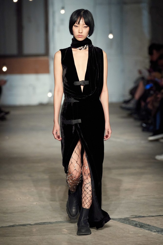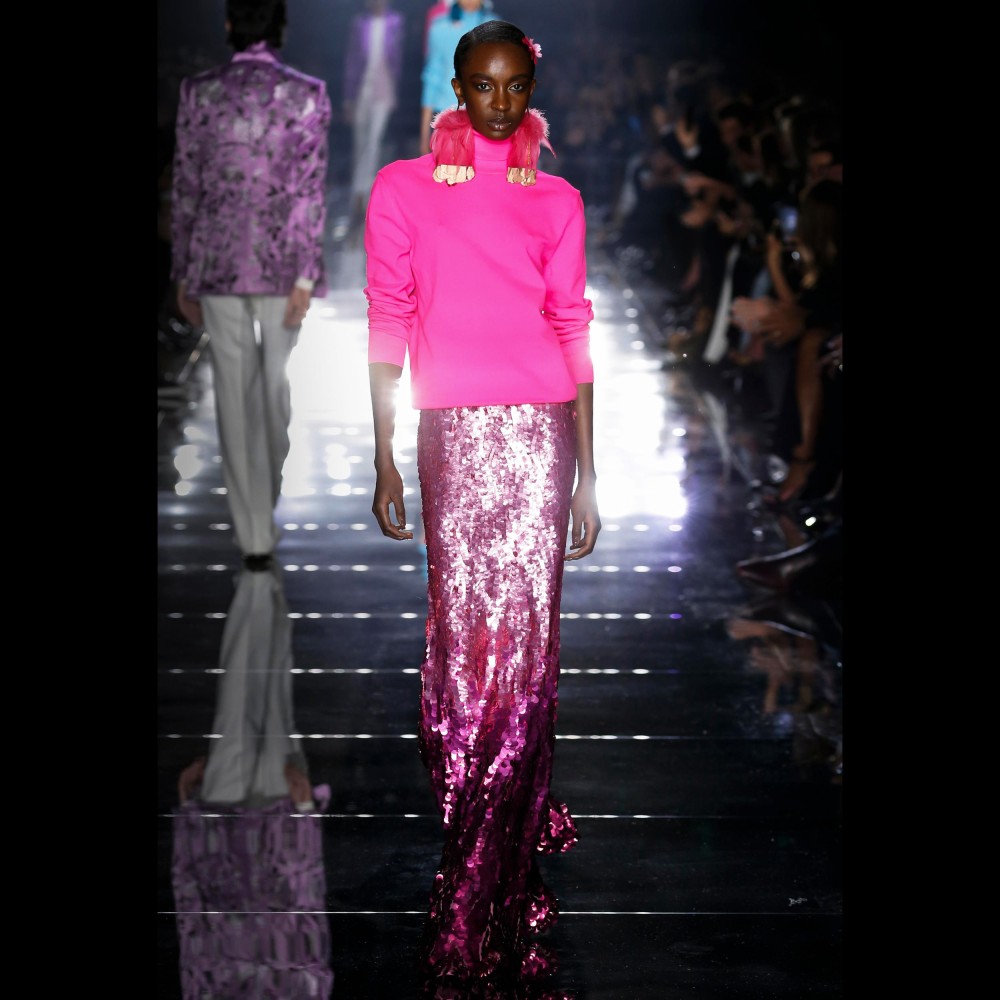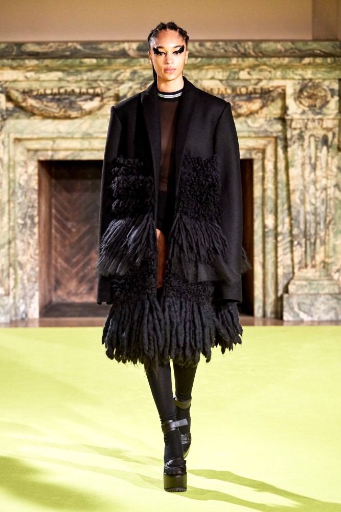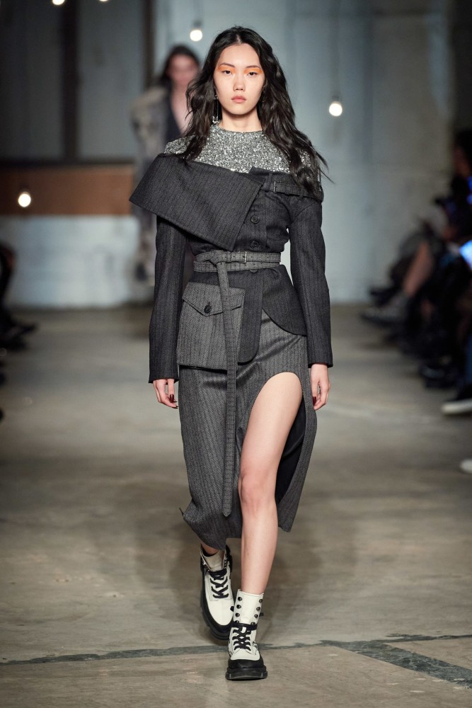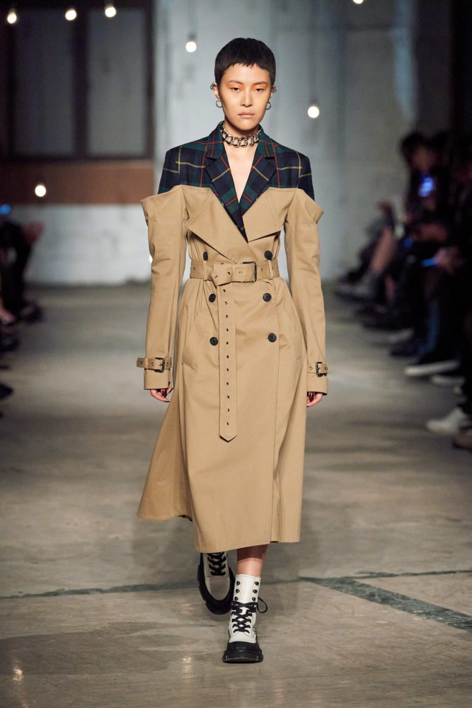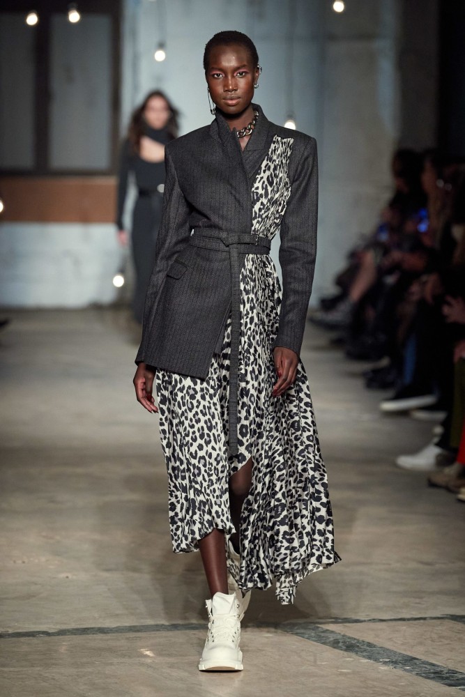 “Happy punk” was the basis for Fernando Garcia and Laura Kim’s autumn/winter 2020 collection. Epitomising the word “angsty”, models strutted down the runway in plaid variants, chunky rocker boots and (sequinned) fishnet tights. The earnest-faced models, with backcombed hair and thick chokers, only heightened the mood of the venue. Oddly and unexpectedly, the inspiration behind this collection was Wes Anderson’s Fantastic Mr Fox. Mr Fox’s playful and canny patchwork suits spun the designers into a frenzy of woollen tweeds and tartans, which ultimately manifested in a show designed for Jenny Humphrey. Monse is no stranger when it comes to upcycling and regenerating through its splicing and dicing of garments to create new innovative designs. Ultimately, it was the outerwear that shone through. The hybrid blazer-dress incorporating both animal print and pinstripes played to unexpected contrasts. Little J has finally found the perfect collection to match her punk-fuelled disquietude.
