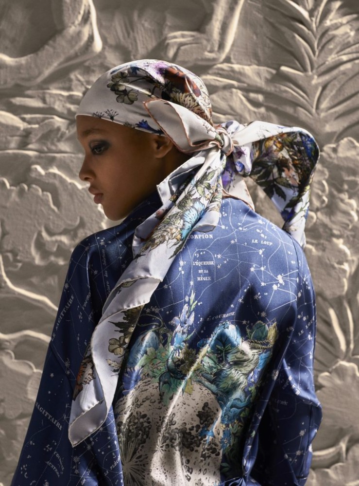 “The scarf is to a woman what a necktie is to a man, and the way you tie it is part of your personality.” So said Christian Dior when he wrote The Little Dictionary of Fashion back in 1954. How true a statement it must be to still be relevant today. With her usual air of whimsy and touch of fantasy, Dior creative director Maria Grazia Chiuri has succeeded in reinventing this staple accessory for AW22. A potential usurper of the iconic Hermès Twilly, each scarf is unique, perhaps making it the ultimate symbol of individuality.