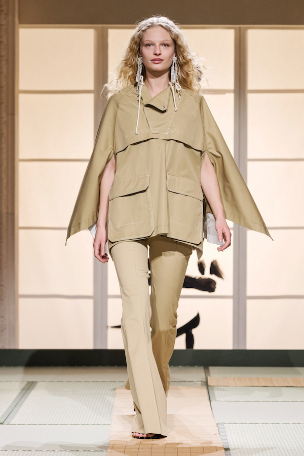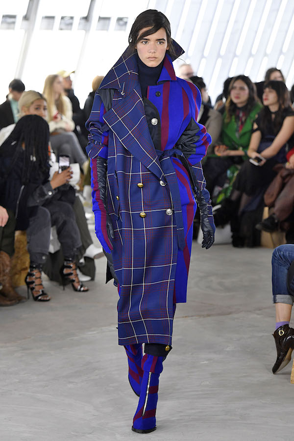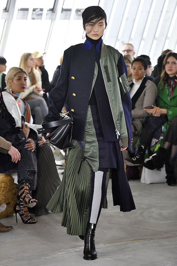 Chitose Abe has a definite approach to how she sees what clothes can be. Deconstructed here and spliced there with an unexpected element, every season, I feel as if I have had my fill and have way too much Sacai in my closet. But then she reveals a new collection and there is a classic jacket or outerwear element that makes me feel all kinds of things. With each collection since she started showing in Paris, she had mastered an outerwear style: the puffer, the M16 jacket, the peacoat. This season, she presents the denim jacket. Take a pick between blue or black denim, but when spliced with a tailored blazer, the combination is superb and I am back in her grasps again. I might not mention the fur scarves that are attached to some of the jackets in case there are some anti-fur readers out there, but I guess I couldn’t help myself. Count on the longer skirts with pleats and movement and the sweaters and shirts that are constructed in front and flow with volume in the back. The American Indian print definitely had a spirit.