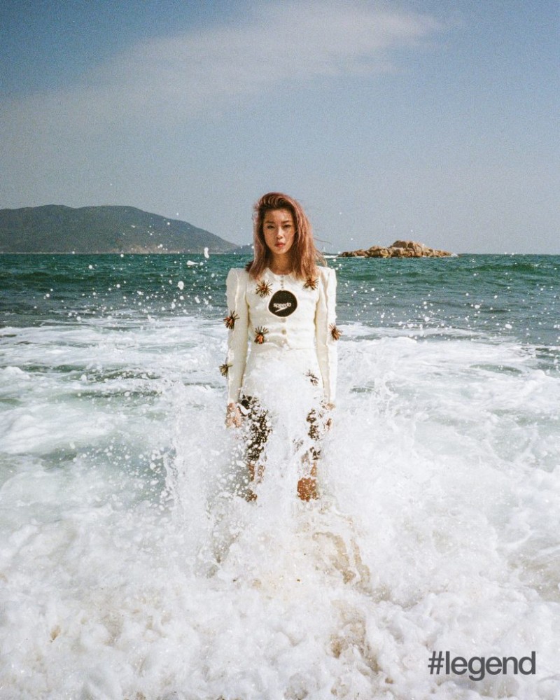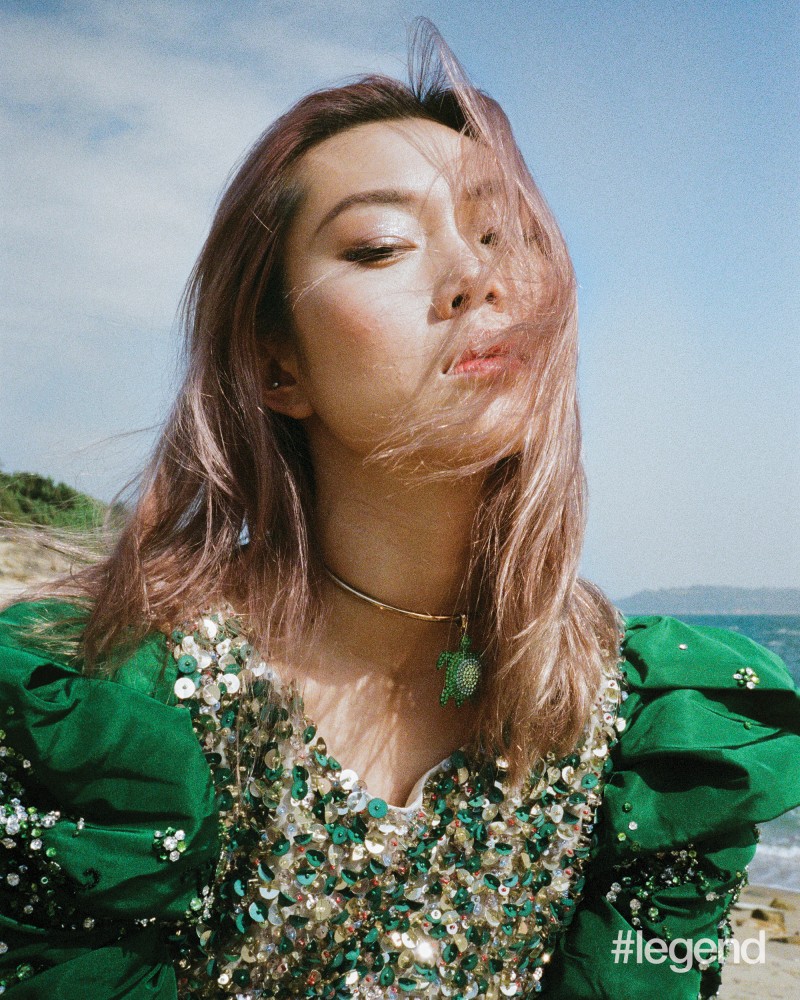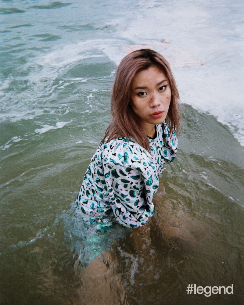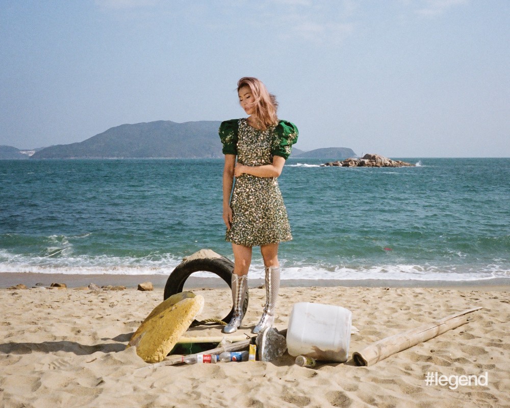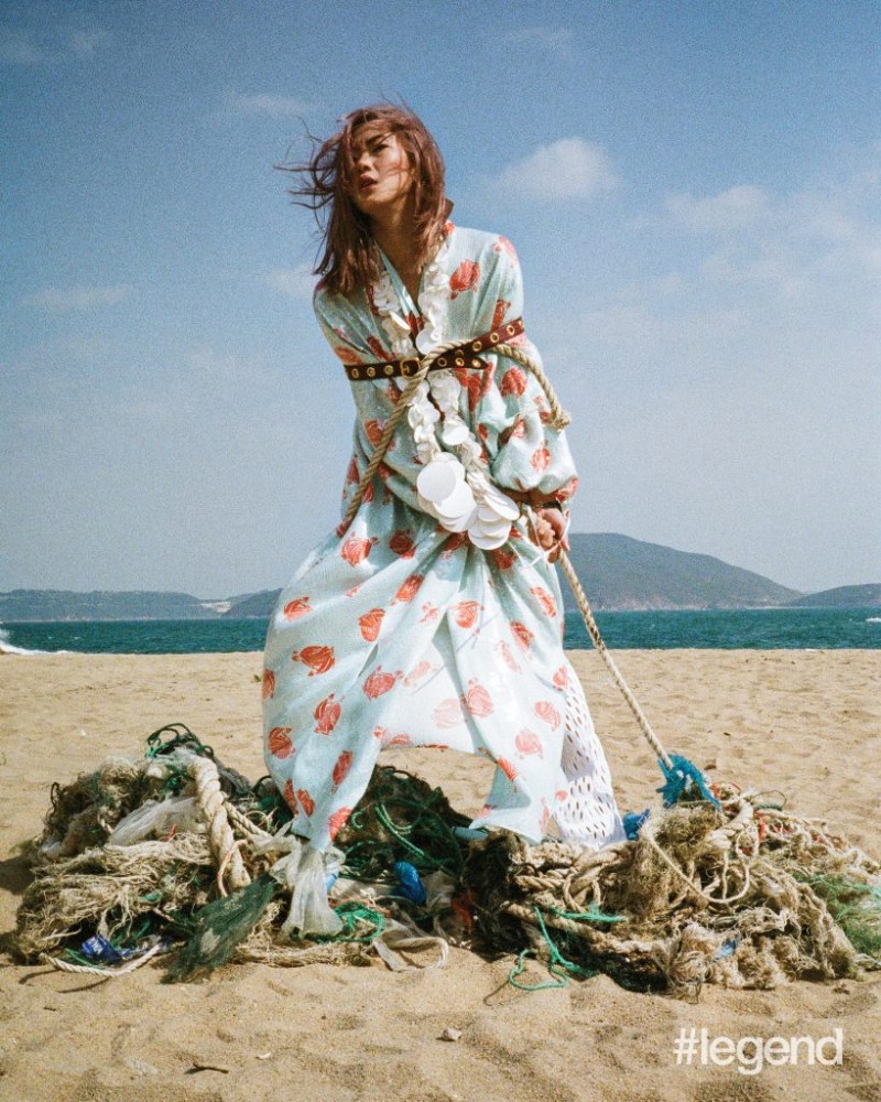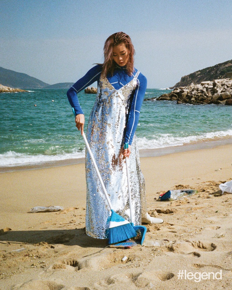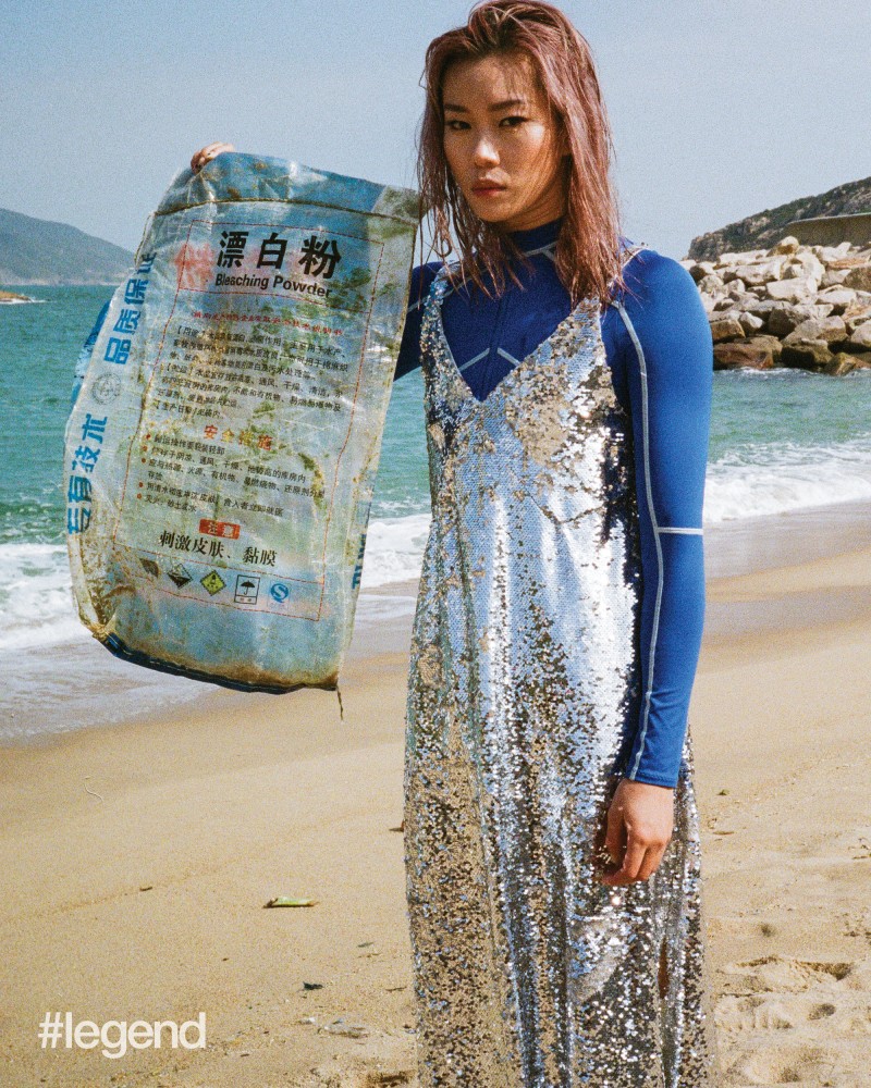 Stephanie Au in Mulberry Silver sequinned dress, H&M Conscious Blue swimsuit created using recycled materials Stephanie Au in Gucci Dress and choker Stephanie Au in Mulberry Silver sequinned dress, H&M Conscious Blue swimsuit created using recycled materials