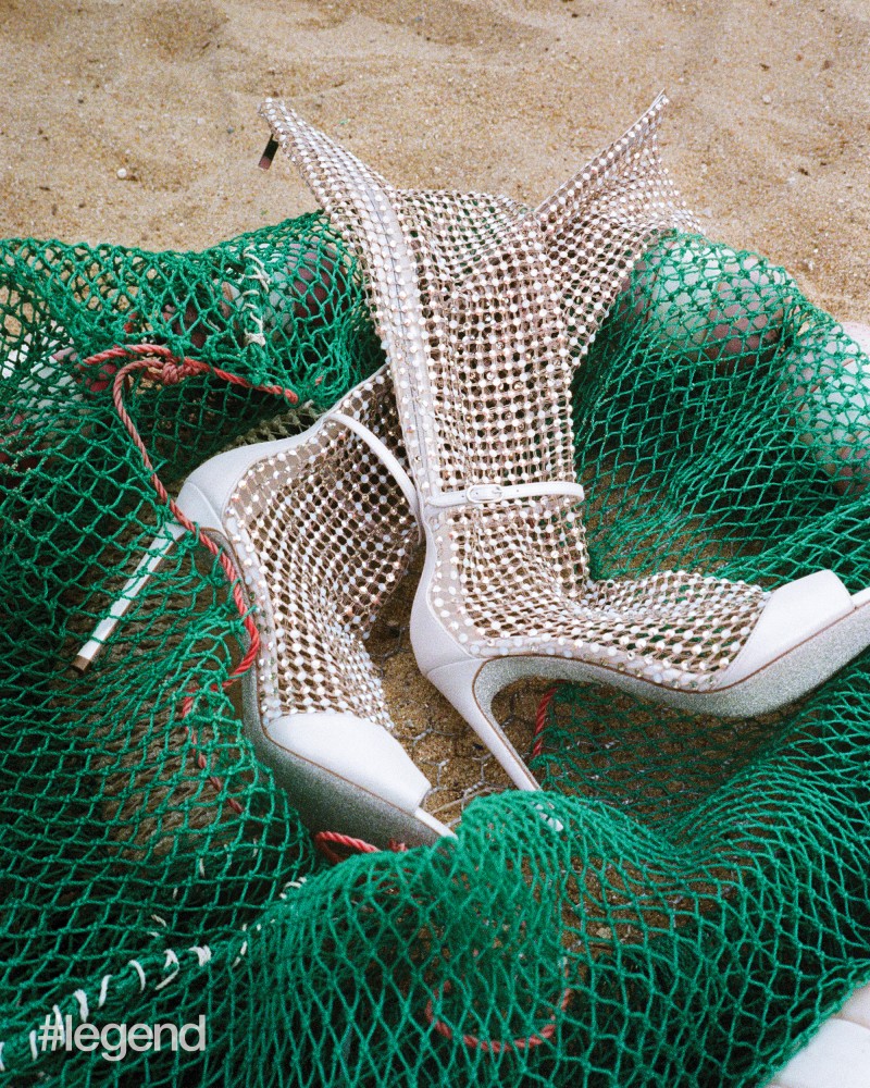 Stephanie Au in Miu Miu Green sequinned dress, Dior Silver net boots , Atelier Swarovski Green turtle necklace Stephanie Au in Kenzo White sequinned cardigan with trousers Stephanie Au in Miu Miu Green sequinned dress, Dior Silver net boots , Atelier Swarovski Green turtle necklace