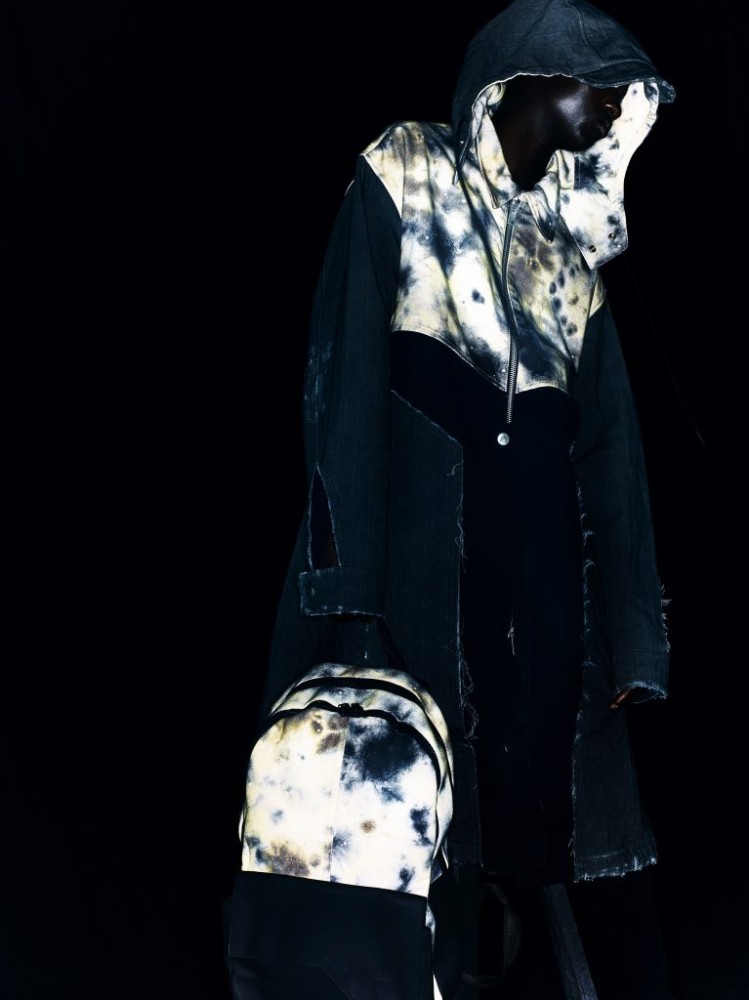 Displayed in an industrial setup of corrugated steel and pipes, with garments in the unmistakable utilitarian-meets-apocalyptic-gear ACW shapes, further rendered in Diesel’s signature material of denim with technical tie-dye treatments, the message of this collection was clear. This was the clothing of tough urban youth with a hint of anarchic tendencies – a seamless mixture of the philosophies from both brands.