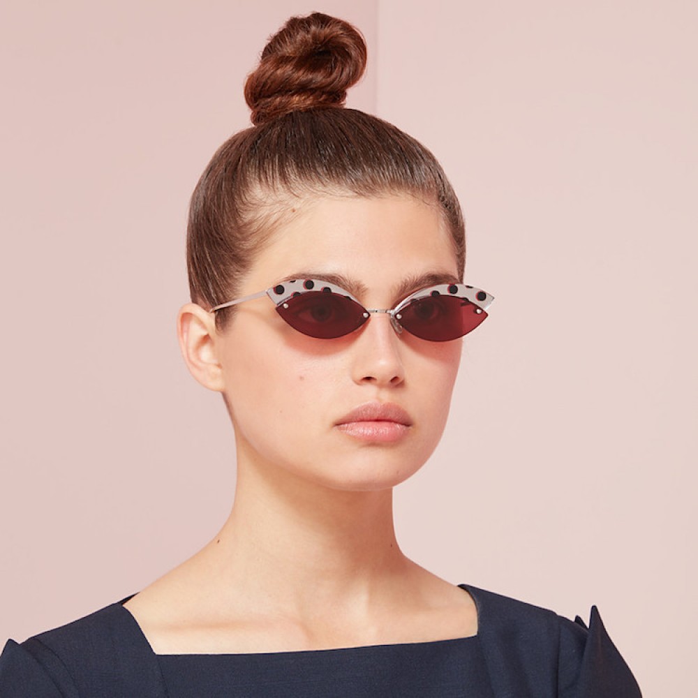Bring out the festive spirit with a quirky pair of shades. These Defender sunglasses take funky to a whole new level with this innovative butterfly design. The pairing of cherry-red lenses and mirror optyl brows with polka dots gives it high dimension, no matter what side you’re looking at them. Comes in a variety of colours; available on fendi.com