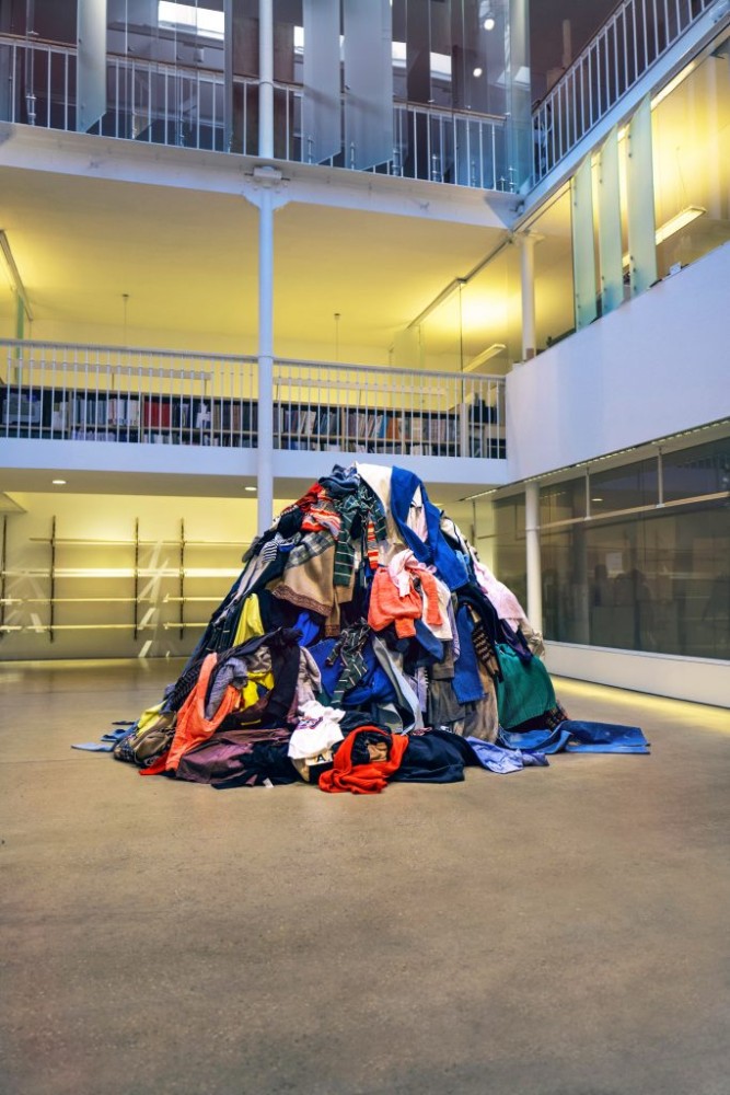 This colourful rainbow-esque sofa reframes the concept of the couch as a model of environmental accountability design, giving a sense of nirvana to discarded Balenciaga clothing materials from multiple eras. The patterns, cuts and tags within the stuffing are recognisably Balenciaga, creating a mix of past seasons and ideas.